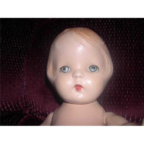 This is a 14" composition doll that is like the Effanbee Patsy doll. She is marked on the back of her head but I can only read Co. Inc., the letters prior to that are too worn. She has blue tin eyes and good eyelashes. She has organish paitned hair. I'm not sure if the lips have been repainted or not. She has some crazing and cracks in the composition but will look nice when dressed. There is some paint flaking on one arm. The bottom of one foot has a crack and one piece of composition is missing. You know some little girl loved her! If you think you can give her some TLC and enjoy her, please bid. She is from a smoke free environment. Buyer to pay $15 for shipping, insurance and handling. Thanks for viewing.
