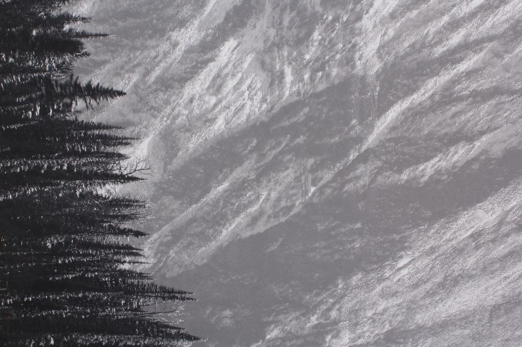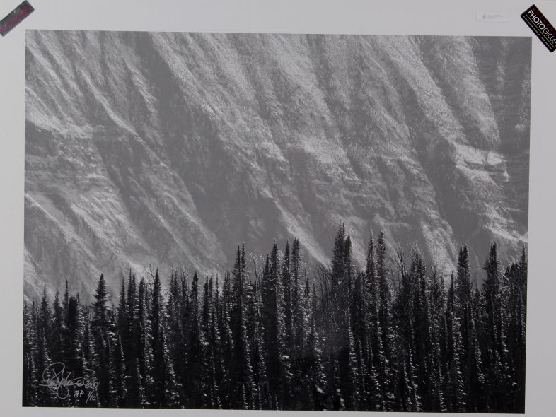 This is an original work of art photographic giclee print that Rein shot in 2008. This original shows a landscape of Lodge Pole Pins compressed against the North West Side of Lone Montain (Moonlight Basin). This is an Artist Proof numbered 1/10. The piece is hand signed and titled by the artist. Rein is a Bozeman, Montana artist whose works hang in many Montana Homes. This is shrink wrapped backed on foam core that measures 24 3/8"x31 1/8". The artwork measures 20.25"x27.25"