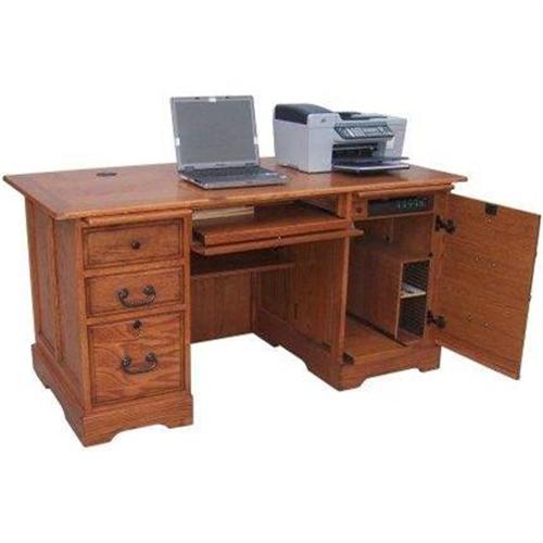 Beautiful solid oak computer desk uniquely designed to store your home or office computer equipment. Quality construction - NO PARTICLE BOARDS! These beautiful desk are constructed with quality materials and details. Available in Harvest Distressed stain and hand rubbed to a antique satin sheen. Also available in a darker oak finish.