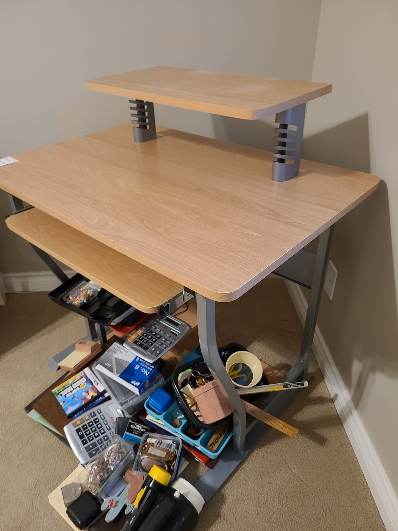 Computer desk 36x24x39and stationery included. Pickup 11 am.