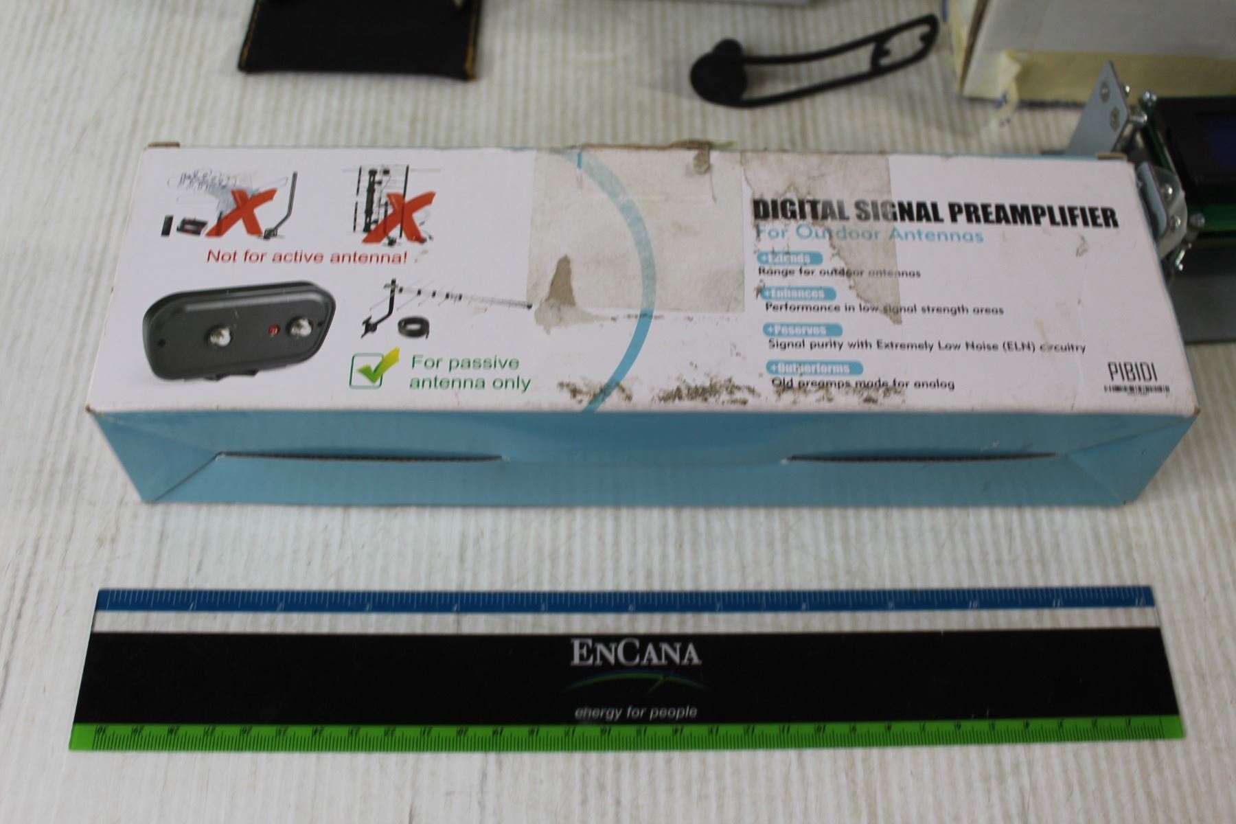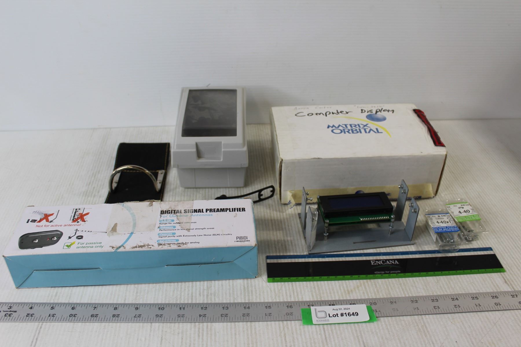 Computer Display, Digital Signal Preamplifier For Outdoor Antennas, Ruler, Electricians Hammer Holster, Floppy Disk Storage Box