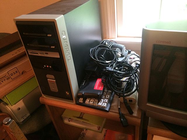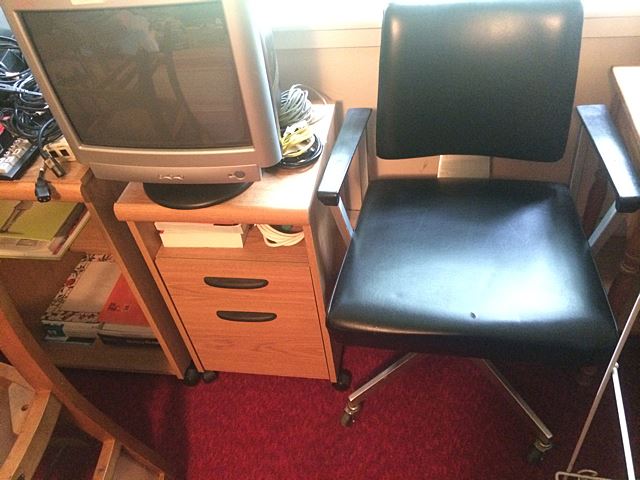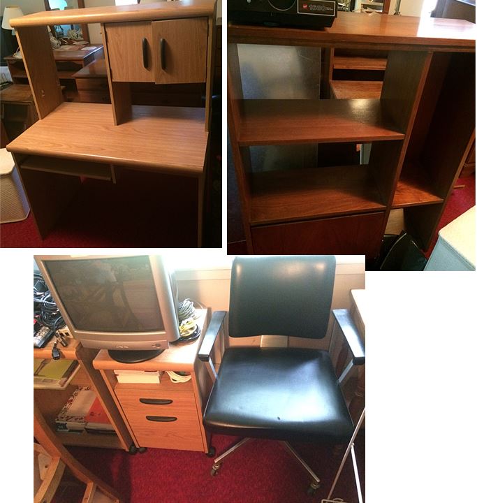 Estate computer furnishings including desk, computer workstation, office chair, book case, computer and contents as found. Local buyers take note: These items are at Litchfield, CT Estate and can be picked up at the estate.
