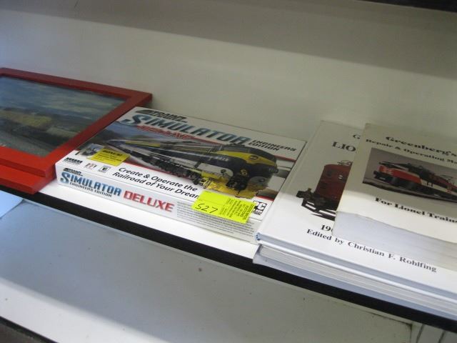 Computer Train Simulator Kit, 2 red framed Train pictures, 4 Lionel Repair & Operating Books