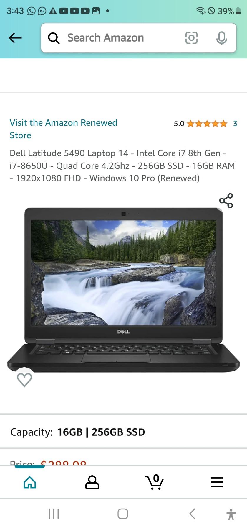 Dell laptop 256 gigs SSD, i7 8th gen 16 gigs of RAM, refurbished