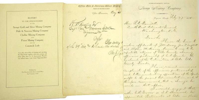 *Report to the stockholders of the Savage Gold and Silver MC, Hale & Norcross MC, Chollar Mining Company and Potosi MC on the Comstock Lode. 1916; *Hale & Norcross letter/letterhead dated Aug 30, 1887; and