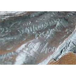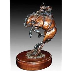 Con Williams. Bronze. "Old College Try." #AC1/100. 1993. Montana State University Rodeo Team Booster. 13" Tall signature inscribed. Est $500 - $750.