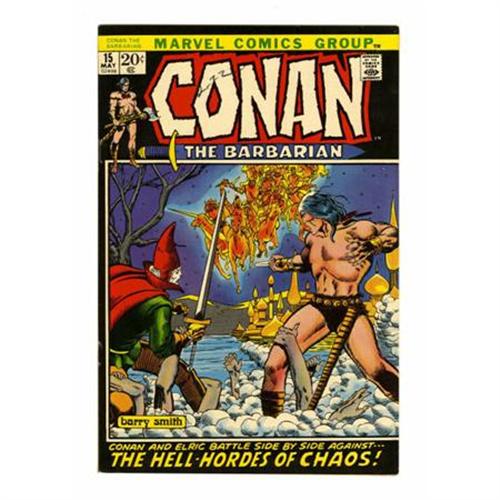 <B>Conan the Barbarian #15 (Marvel, 1972) Condition: VF+.</B></I> Elric appears on cover and in story. Barry Smith cover and art. Overstreet 2007 VF 8.0 value = $38; VF/NM 9.0 value = $57. <I> From the Madison Monk Collection.</B></I><BR><BR><b>Shipping:</b> Comics - Unslabbed (<a target="_blank" href="http://www.heritageauctions.com/common/shipping.php">view shipping information</a>)