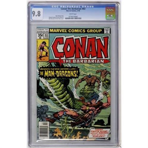 <B>Conan the Barbarian #83 (Marvel, 1978) CGC NM/MT 9.8 White pages.</B></I> John Buscema cover. Howard Chaykin art. Overstreet 2007 NM- 9.2 value = $4. CGC census 9/07: 2 in 9.8, none higher.<I> From the Janowicz Collection.</B></I><BR><BR><b>Shipping:</b> Comics - Slabbed (certified) (<a target="_blank" href="http://www.heritageauctions.com/common/shipping.php">view shipping information</a>)