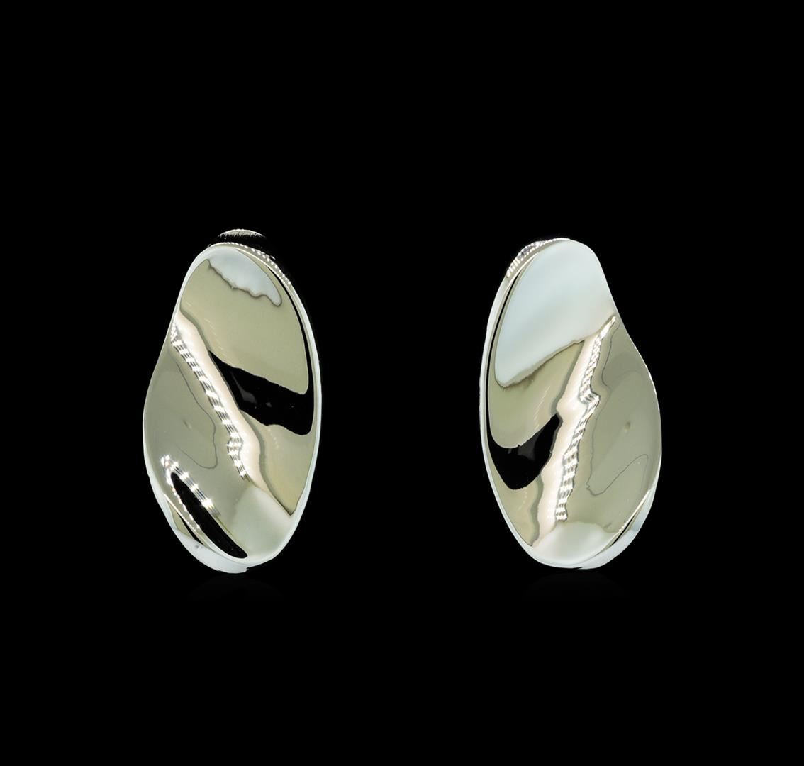 High end designer jewelry. Concave Nugget Earrings - Rhodium Plated. Rhodium Plated French Clip. Silver. 1inch.