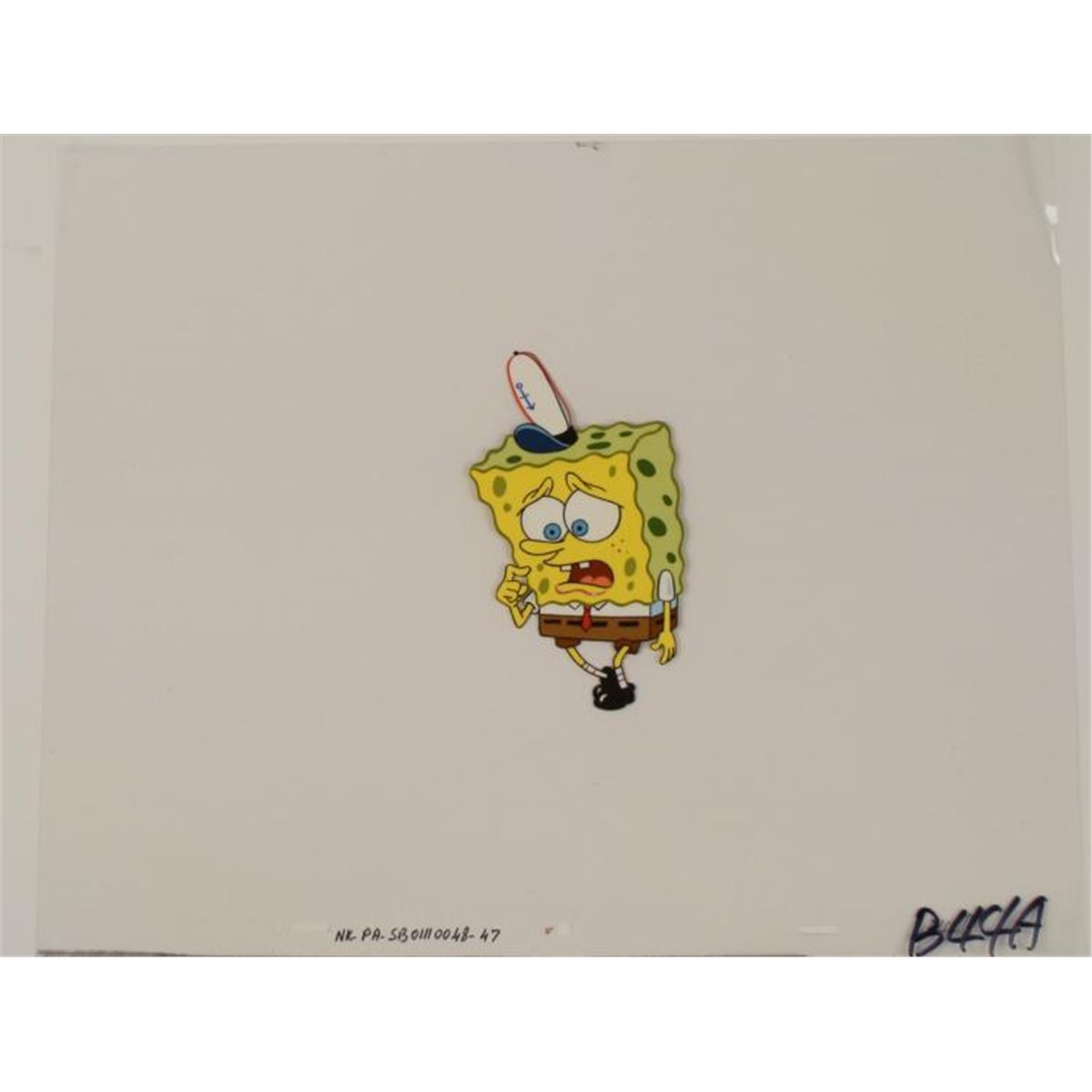 This original animation cel is from the Nickelodeon TV show SpongeBob Squarepants. The story takes place under the deep blue sea in Bikini Bottom, where SpongeBob resides. SpongeBob, who is a yellow, porous sponge, is your typical happy-go-lucky character, as he is always cheerful and enjoys making people laugh. Patrick Star, SpongeBob's neighbor, boasts knowing nothing and is often getting himself into ridiculous situations. Between the homes of these two lies the home of the miserable Squidward, a squid, who is known for being grouchy and playing tricks on SpongeBob and Patrick. Both SpongeBob and Squidward work at the Krusty Krab, a fast food business run by the greedy money-loving Mr. Krabs, a crab, the arch rival of the evil, possibly misunderstood, Plankton. Another neighbor, Sandy Cheeks, an athletic squirrel who normally wears an astronaut's space suit, was introduced in "Tea at the Treedome." She spends most of her time inventing and experimenting. * SpongeBob looks rather concerned as he strolls along here. * Original Production Animated Cel Overall Size of Cel: 13 1/2" x 16 1/2" Very Good ConditionThis is an original hand-painted cel set-up used in the production of an episode of "SpongeBob SquarePants." Each one-of-a-kind set-up represents a slight change in position of the characters. When individually photographed and projected in rapid succession, the images appear to move. * To create production cels, the original animator's drawing is transferred onto an acetate cel (by hand-inking and/or photo copying). The cel is then hand-painted on the reverse side. * The cel is ready to be matted and framed. The animator's notations are at the bottom of the cel. * *