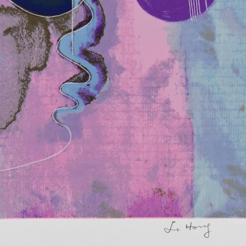 "Concerto" is a limited edition serigraph on paper by Lu Hong, numbered and hand signed by the artist. Includes Letter of Authenticity. Measures approx. 37" x 38" (with border), 33" x 33" (image). Please note: there is a small tear on the bottom-left border area that may be concealed when framed.