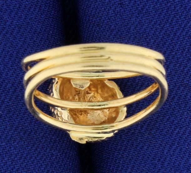 In 14k yellow gold. Detailed beautiful seashell atop three bands. Size 5 1/4. 4.9g.