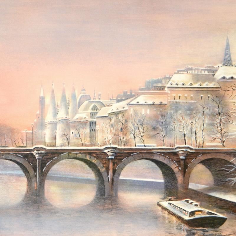 "Conciergerie" is a limited edition lithograph on paper by Antonio Rivera, numbered and hand signed by the artist! Measures approx. 29" x 21" (border). 26.5" x 17.5" (image).