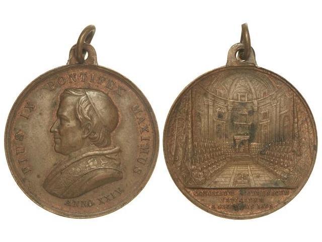 Concilio Ecuménico. - 1869. - VATICANO. - Anv.: PIVS IX PONTIFEX MAXIMVS ANNO XXIV. Busto a izquierda. Rev.: Reunión del Concilio. En exergo: CONCILIVM ECVMENICVM VATICANVM 3 DESEMBRIS 1869. Br. Ø 32 mm. EBC. - -