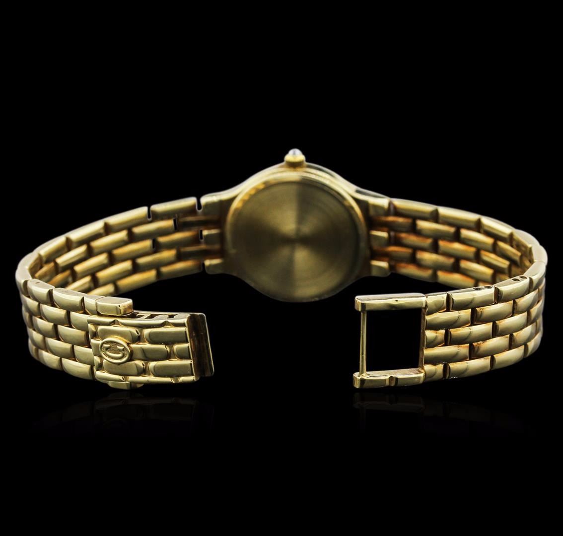 One Concord ladies wristwatch featuring: Case: 14KT yellow gold. Bezel: 14KT yellow gold diamond set. Dial: Gold tone with gold tone hour and minute hands. Bracelet/buckle: 14KT yellow gold. Total weight of watch: 44.90 grams.