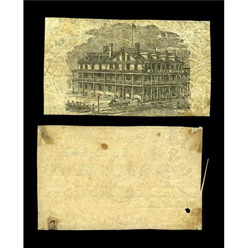 <B>Concord, NH- O.C. Coffin, Depot Refreshment Saloon</B></I> 3¢ Oct. 1, 1863, Feb. 12, 1863<BR>Two pieces, the first <B>Fine,</B></I> the second <B>About Uncirculated</B></I> with two small holes. Both are quite scarce.
