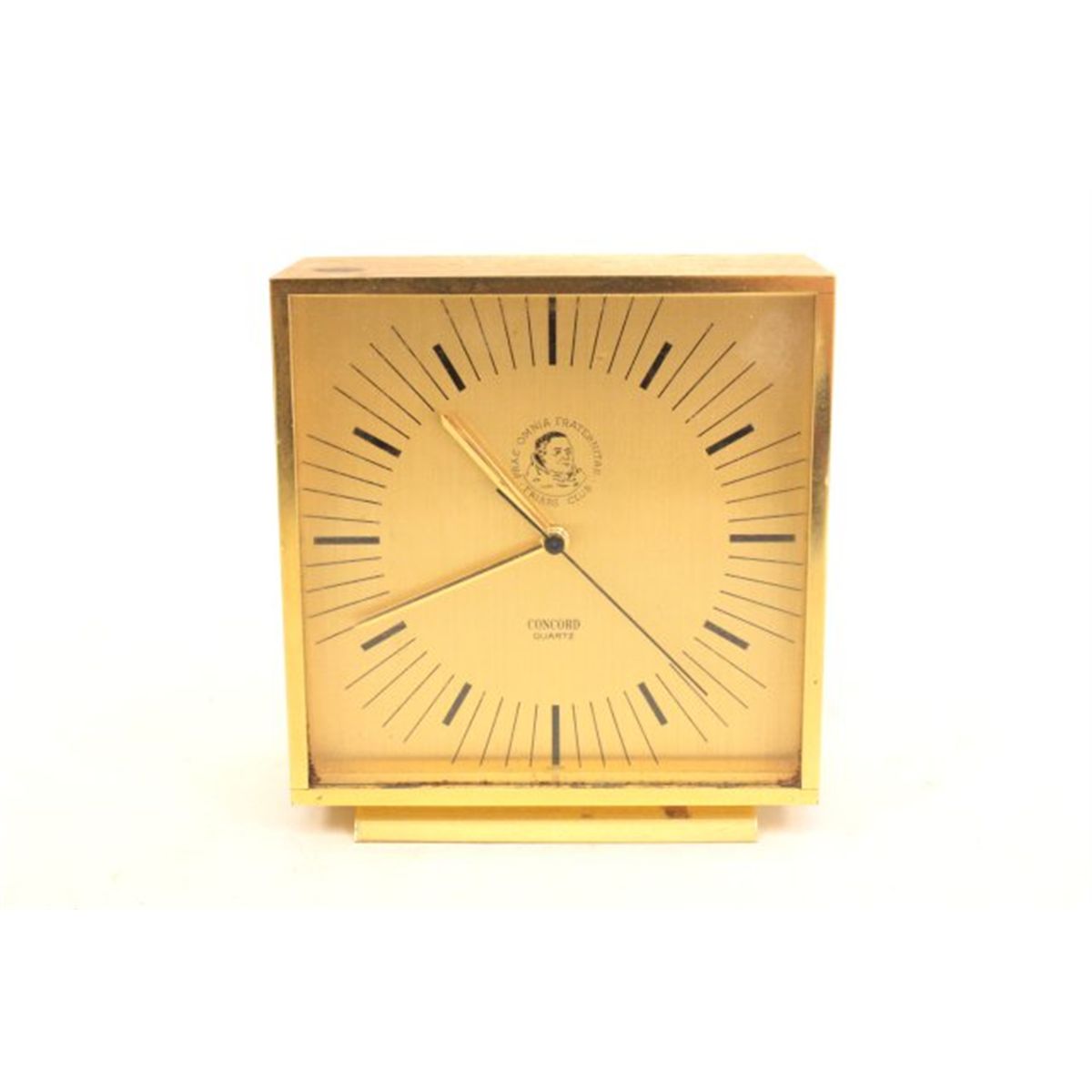 1- Concord clock has no back , Friar's Club on dial, approx. 4.75" H x 2" D. 1- Salem ship wheel metal wall clock, 13 jewels, electric, approx. 7" Diam x 2.5" D. Please read our terms of sale.