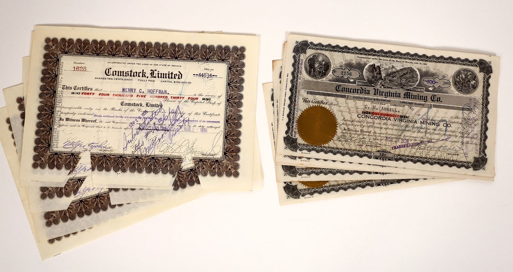 5 each issued-1928 Concordia Virginia and 1934-35 Comstock, Limited.