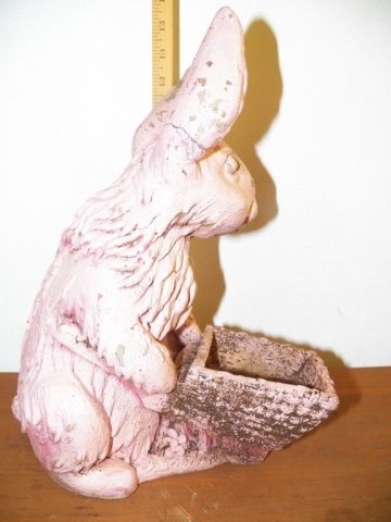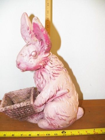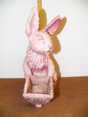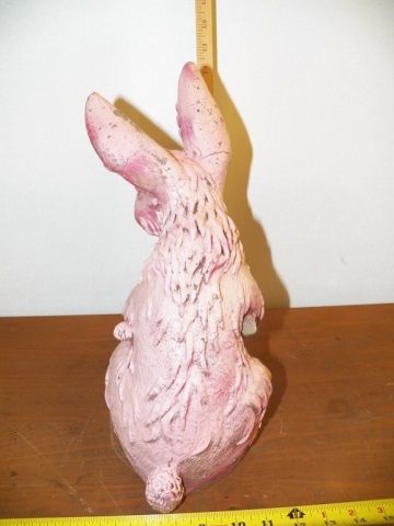 Painted Pink Garden Rabbit with Wheelbarrow approx 15 lbs. and 15" tall