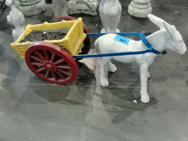 Concrete donkey and wagon planter yard ornament