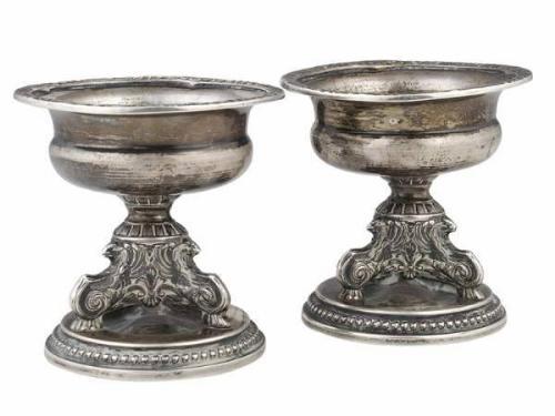 Silver, 270 g. Round base with beaded decoration, pressed, stylised decoration. Marked: Hungarian, Late 19th century, N. G. maker’s mark. Size: 8 cm
