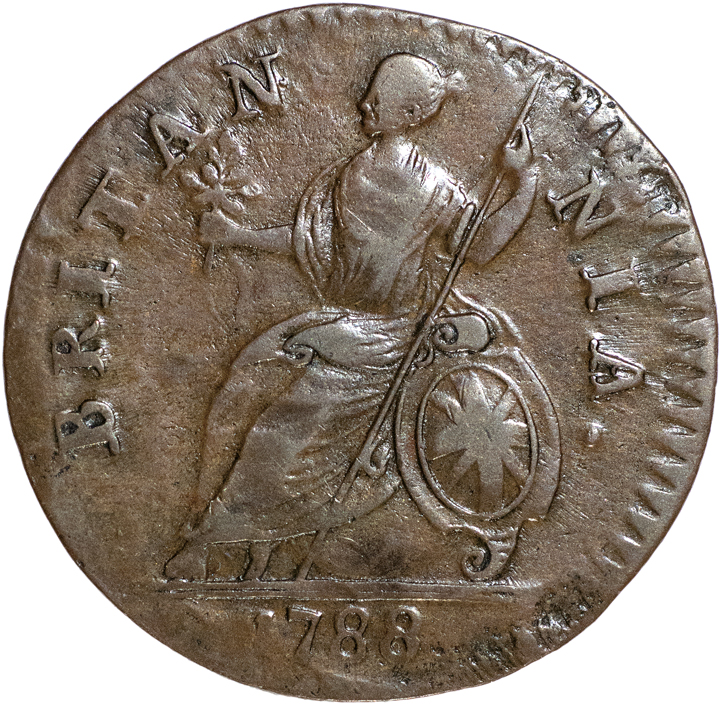 1788 Machins Mills Halfpenny. Vlack 23-88A. Whitman-8100. Breen-997. Choice About Uncirculated.