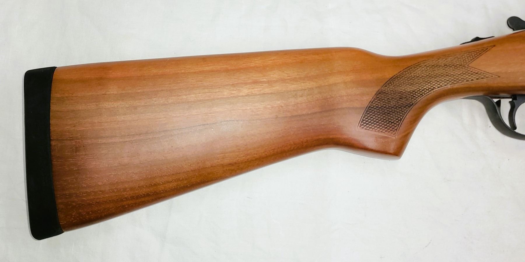 Other features are a single trigger, brass bead sight at the muzzle, and safety switch