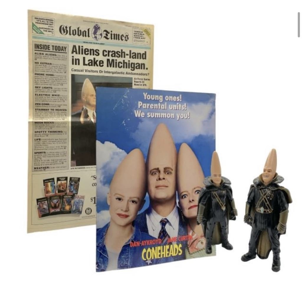 Coneheads (1993) - Prop Newspaper and Toy Action Figures.