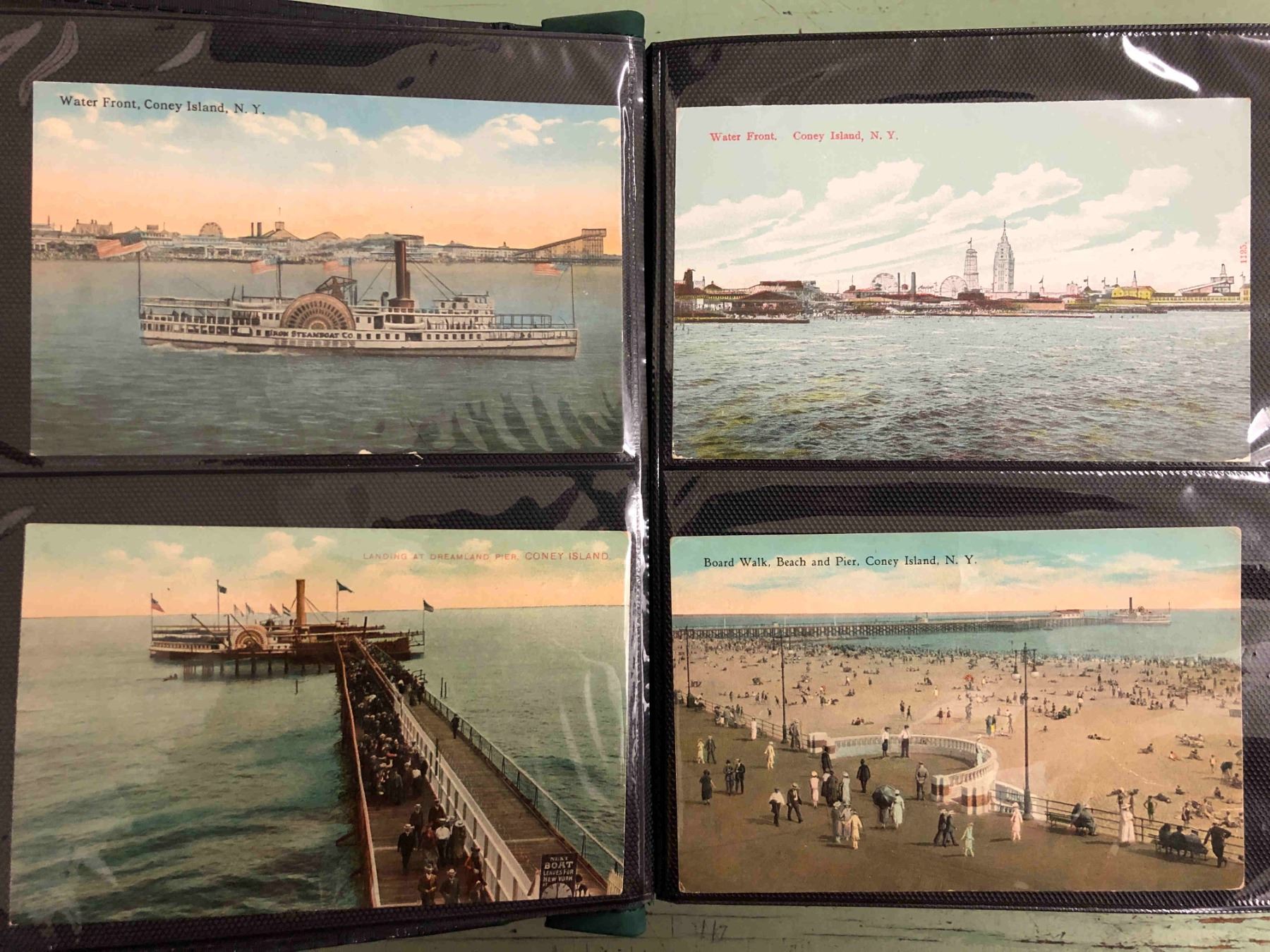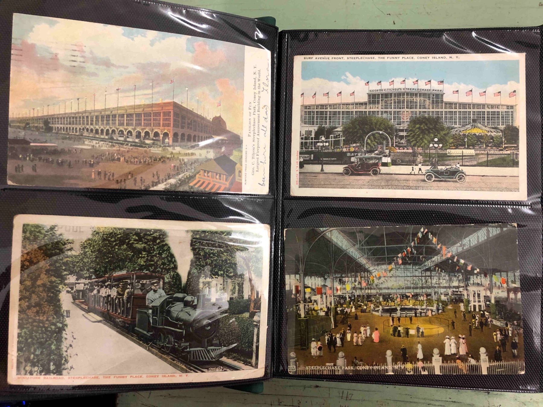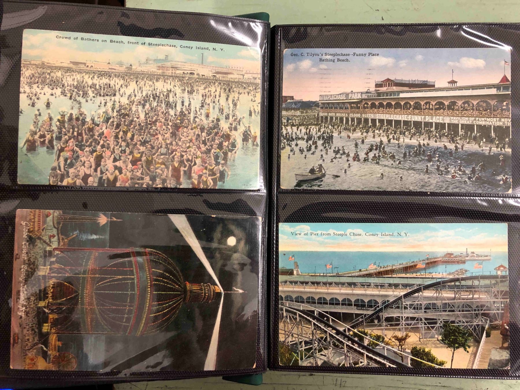 Approx. 120 early Coney Island. A few linens. Rides, Romantic Comics, advertising and more. Nice cards throughout. Pictures shown are just a portion of the lot.