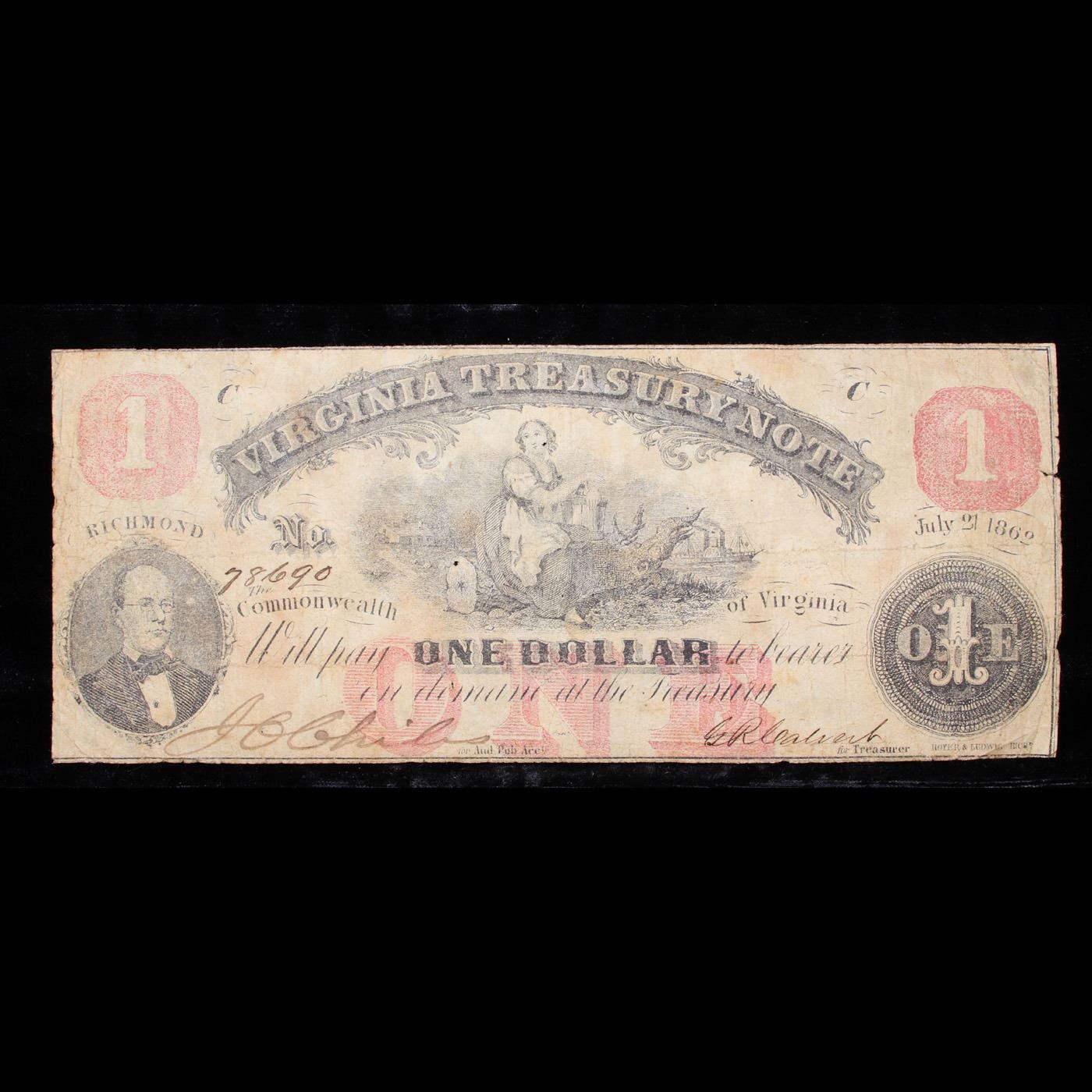Confederate $1 Dollar Richmond Virginia Treasury Note July 21, 1862 Confederate currency Grades xf.