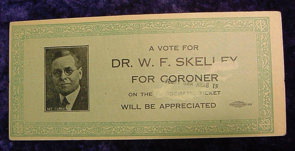 Fac-Simile Confederate Advertising Note. Vote for Dr. W.F. Skelley for the Democratic Ticket Will be Appreciated. (Davenport" Iowa)