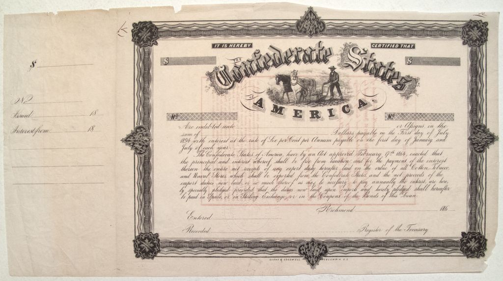 Ball number 341, type 162 found on page 211. ONLY 2 KNOWN. Unissued printers sample, proofing marks, trims, etc. To "be paid in species" (gold or silver). Some rips, see photograph.
