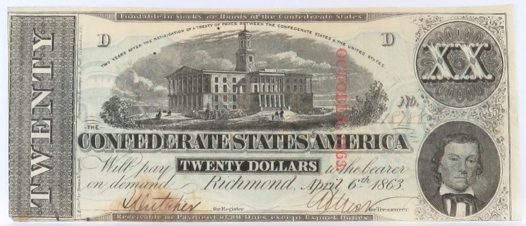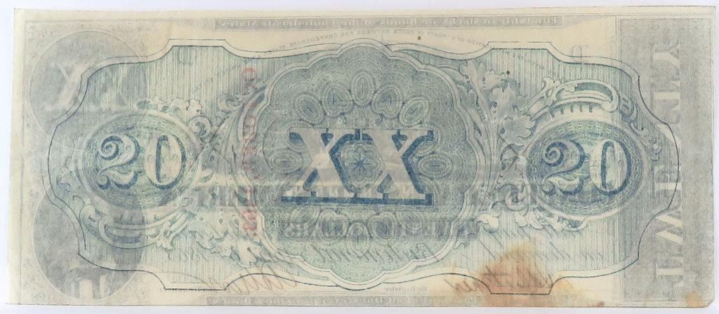 Confederate Currency: April 6, 1863 $20 Confederate States of America - T-58.