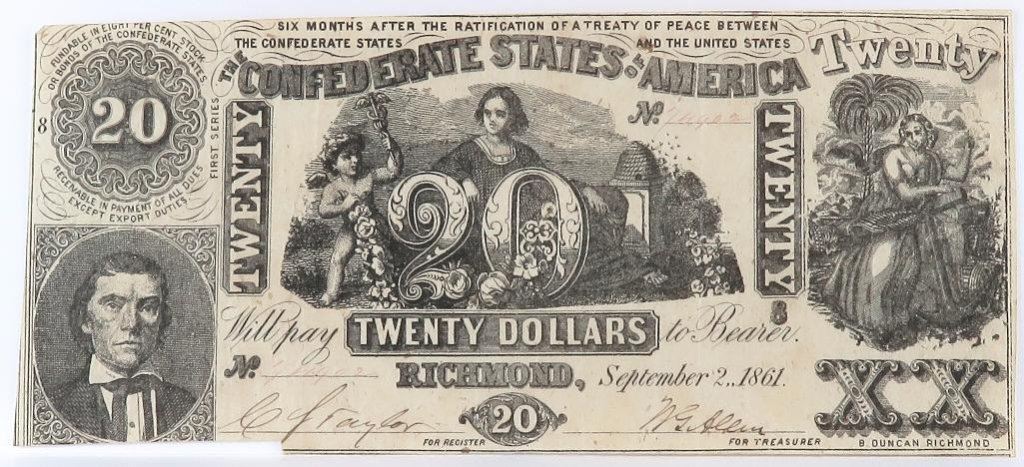 Confederate Currency: September 2, 1861 $20 Confederate States of America - T-20.