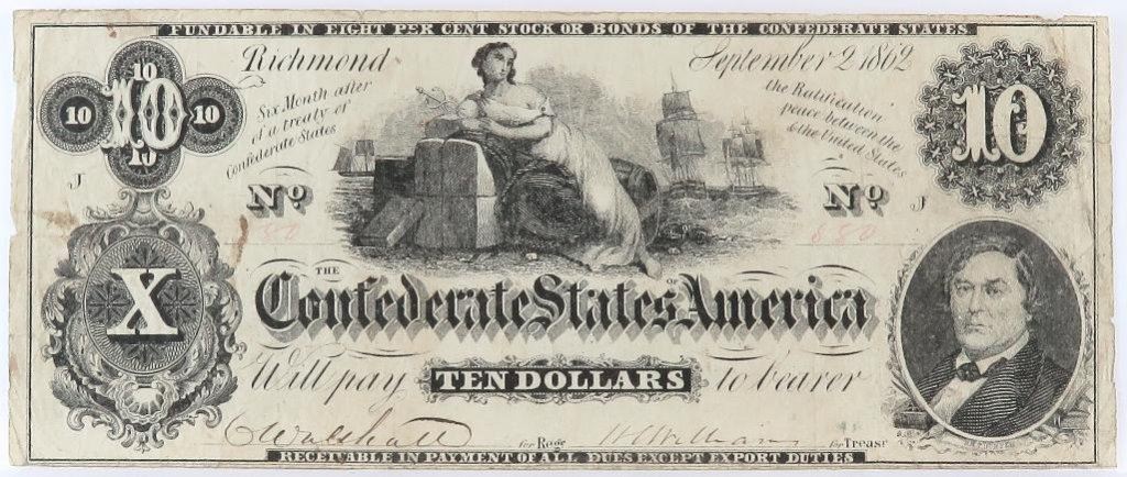 Confederate Currency: September 2, 1862 $10 Confederate States of America - T-46.