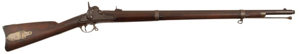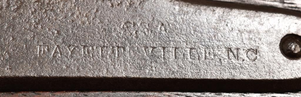 Rare Confederate type 1855 rifle manufactured at the Fayetteville North Carolina armory utilizing parts & machinery captured at Harper's Ferry. Rare No eagle, no date on side plate. 32" barrel. Antique