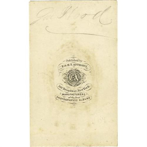 <B>Confederate General John Bell Hood <I>Carte de Visite</B></I>.</B></I> Confederate General John Bell Hood, the famed leader of the Texas Brigade appears here in this scare and nice CDV by Anthony. Measuring 2.5" x 4", this is a nice image of a Confederate hero ready for framing.<BR><BR><b>Shipping:</b> Small Flat (<a target="_blank" href="http://www.heritageauctions.com/common/shipping.php">view shipping information</a>)