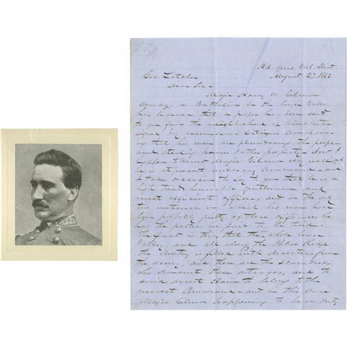 <B>Confederate General John D. Imboden War-Date Autograph Letter Denying Depredations!</B></I> Autograph Letter Signed (twice: "J.D. Imboden" and with initials"), as <I>Brigadier General,</B></I> 2 pages, recto and verso, 7.5" by 10", H.Q. Valley District, August 27, 1863. To Governor John Letcher of Virginia. The spine of the integral leaf has been strengthened - and the condition is fine. With a typed transcription. Here Imboden, a school teacher and lawyer before he entered the Confederate service as a gunner, defends the men under his command. He denies that soldiers with Major Gilmore - an unusually active and undisciplined man, as it happens - were guilty of plundering and burning towns. "<I>...The fact is this, that the whole lower valley, and all along the Blue Ridge the country is filled with deserters from the army, and these are the scoundrels who commit these outrages, and to avoid arrest claim to belong to the nearest command, and in this case Major Gilmore happening to be on duty in that part of the country, every villain who has deserted his colors, will pass himself as one of Gilmore's men, whenever questioned. The Major has informed me of his purpose to lynch some of these fellows, a proceeding in which I will sustain himself, as I believe it to be the only means of breaking up the rascality.</B></I>" From the Henry E. Luhrs Collection. Accompanied by LOA from PSA/DNA.