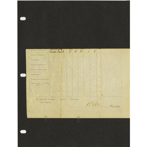 <B>Confederate General Robert E. Lee Signed Document.</B></I> The lower half of a Washington College student's report card boldly signed by Lee as president of the college. Measures 8" x 5.25". <BR><BR><b>Shipping:</b> Small Collectibles (<a target="_blank" href="http://www.heritageauctions.com/common/shipping.php">view shipping information</a>)
