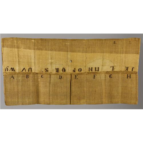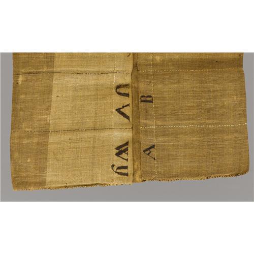 <B>Confederate Mail Pouch,</B></I> 35" x 19" flat. Made of heavily stitched coarse brown cloth and having sixteen compartments, each identified by stenciled letters in gall ink. A few tiny areas of mothing, else very good condition. This extremely rare item would compliment any serious collection devoted to CS postal history.<BR><BR><b>Shipping:</b> Large Collectibles (<a target="_blank" href="http://www.heritageauctions.com/common/shipping.php">view shipping information</a>) <BR><BR><B>Important n