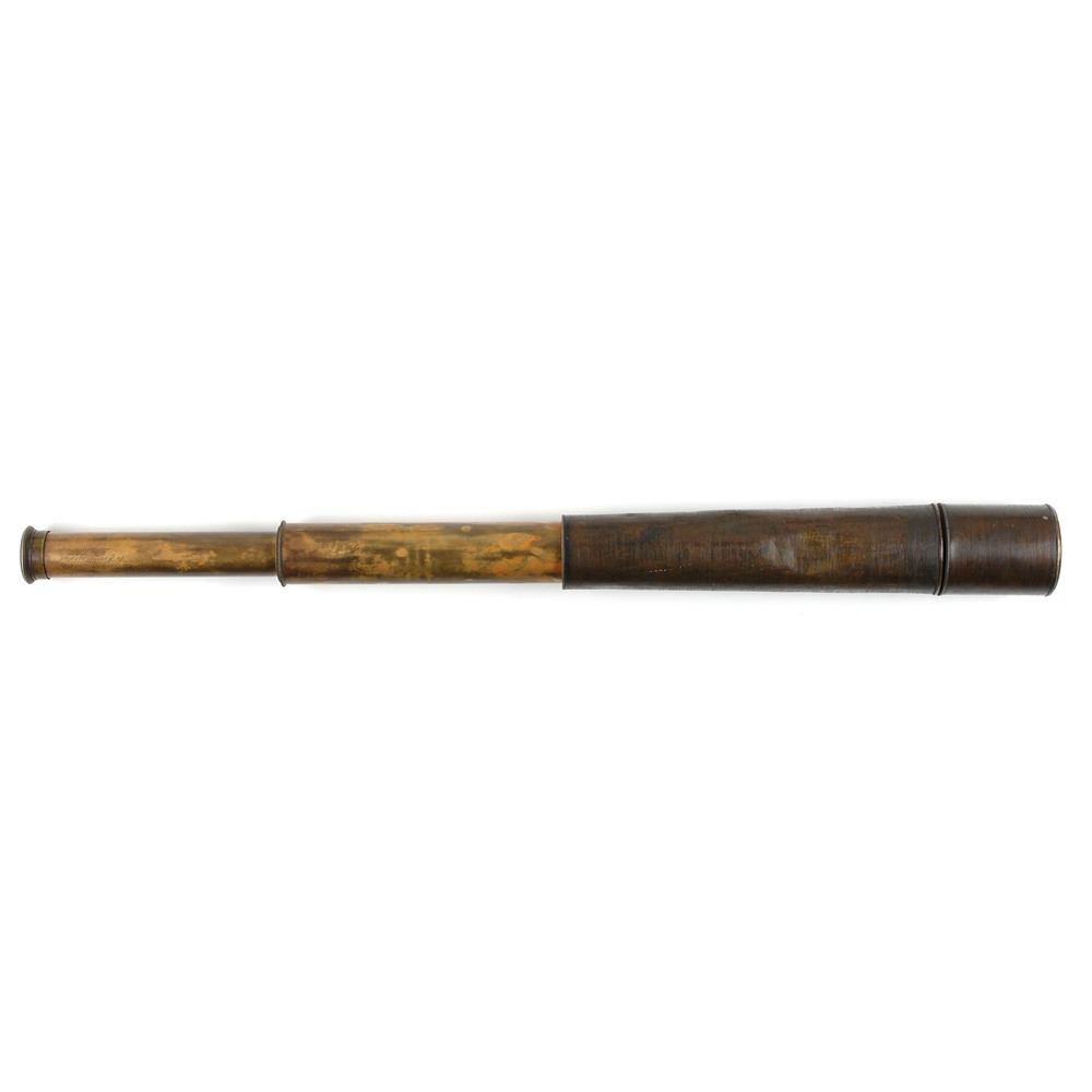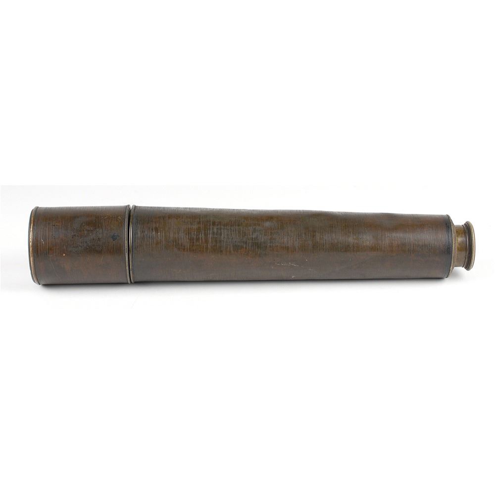 Exceedingly rare Confederate Army Signal Corps four-tiered brass-bodied telescope, measuring 40Ë long at full extension with a 2.5Ë diameter objective lens, engraved near the eyepiece, "Signal Corps, C. S. A., No. 15," and "Negretti & Zambra, Instrument Makers to Her Majesty, London." In very good condition, with general wear from use, a cracked objective lens, various dents and dings, and some tarnishing. In 1864, the Confederate government contracted with well-known Negretti & Zambra to provide twenty-five telescopes to the Signal Corps. These were extremely high quality optical instruments for their time, providing an approximately 40x magnification with a range of fifteen miles. Very few of these Signal Corps telescopes are known extant and such instruments are of the utmost desirability.