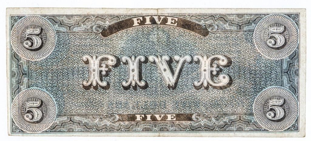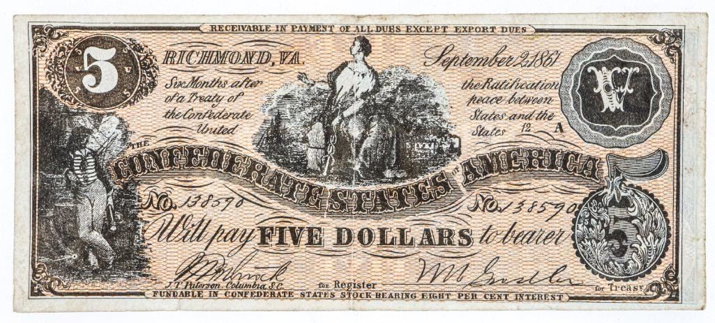 Confederate States America Five Dollars Dated 1861