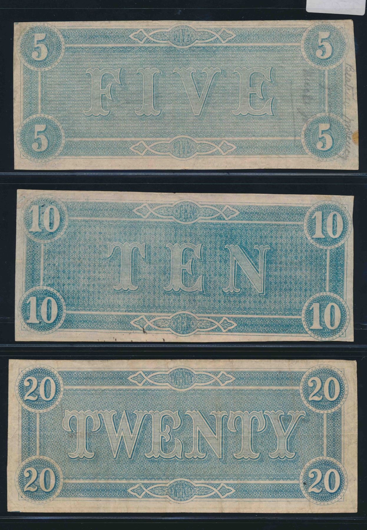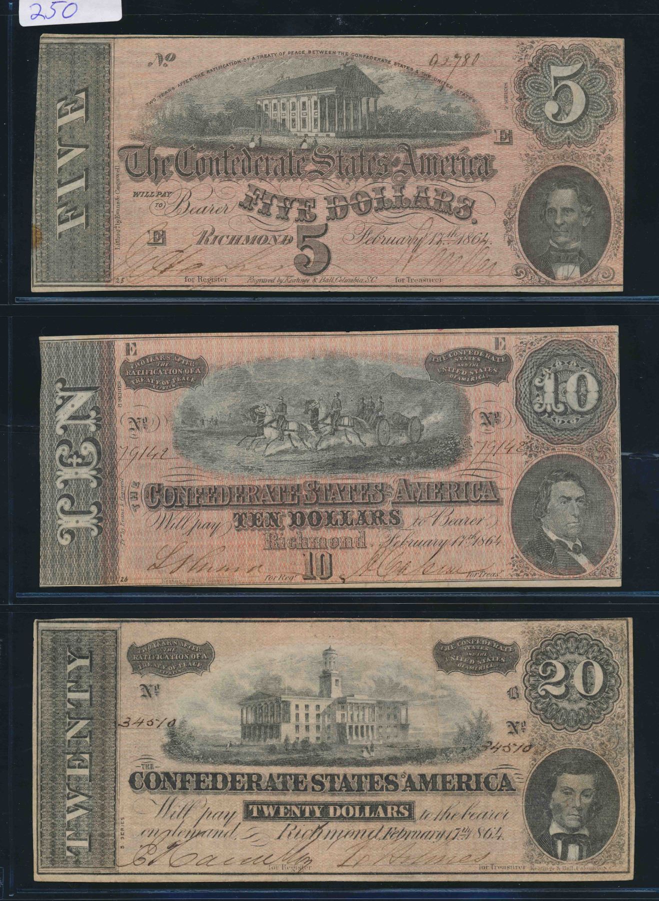 Confederate States of America $5-10-20 Richmond 1864 Very nice + 1 more $5 poor - Lot of 4