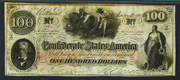Virginia, 1866, $10, T-41 Issued banknote, Slaves hoeing cotton, S/N 163093 pp X, PMG graded Uncirculated 62 NET with note of previously mounted, Interest paid in Richmond in 1864 and hand written "Issued March 5th, 1863….", attractive for the issue.