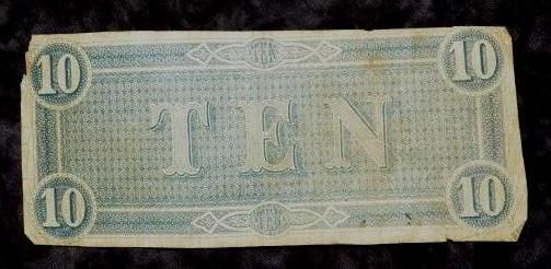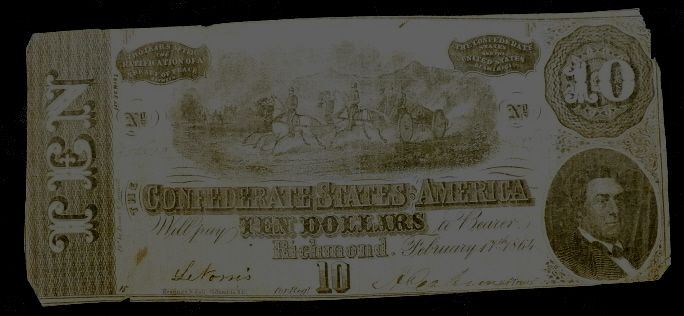 Confederate States of America Ten Dollar Bill dated Feb. 17th 1864