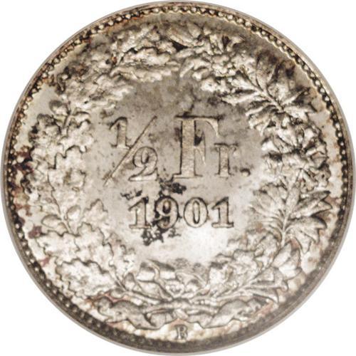 Confederation 1/2 Franc 1901B, KM23, MS66 NGC. Sharply