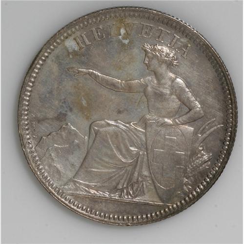 <B>Confederation 5 Francs 1874B.,</B></I> KM11, XF with gold and lavender toning.