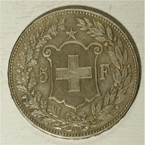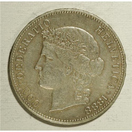 Confederation. 5 Francs 1888-B, KM-34, Choice About XF