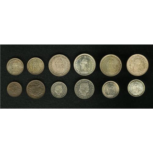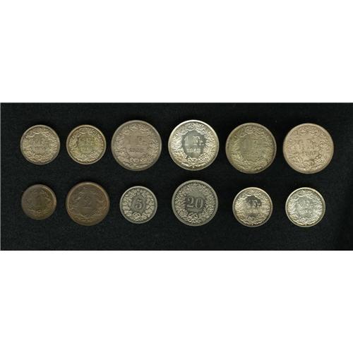 <B>Confederation collection of high quality:</B></I> 1 Rappen 1937-B; KM-3.2; 2 Rappen 1937-B, KM-4.2a; 5 Rappen 1936-B, KM-26b; 20 Rappen 1936-B, KM-29; Half Franc 1921-B, KM-23; Half Franc 1934; Half Franc 1934-B; Half Franc 1948-B; Franc 1928-B, KM-24; Franc 1943-B; Franc 1944-B; and Franc 1947-B. Each of these was hand-picked for quality and for eye-appeal. Very choice to Superb UNC pieces, worth a close look and a good bid. <BR><I>From the Shinholser Collection</B></I><BR><BR><b>Shipping:</b> Coin/Currency (<a target="_blank" href="http://www.heritageauctions.com/common/shipping.php">view shipping information</a>)