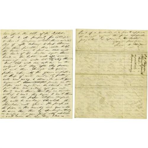 <B>Confidential 1856 Political Strategy Letter to Thomas Caute Reynolds.</B></I> Eight pages, 7.5” x 9.5”, St. Louis, June 13, 1856, from Isaac H. Sturgeon, to Thomas Caute Reynolds. This letter could stand alone as a microcosm of the issues surrounding the 1856 elections. There are references to “Know Nothings”, slavery, Thomas Hart Benton, anti-immigrant and anti-Catholic sentiment, etc. The letter is a point-by-point strategy for inundating the local St. Louis newspapers with a pro-slavery message. It panders to the working-class immigrants and preys on their fears of discrimination. The letter is quite long and detailed but a few choice passages will give a flavor of the whole.<BR>Sturgeon, like political consultants today, understands the short attention span of the electorate and writes: “<I>Let the articles be short making but a point or two in each article - Articles of this sort will be read much more if you can write a dozen short articles making only a point or two in each. It will be better than one long article which will be read by very few on account of its length…</B></I>”. He sets out the talking points: “<I>…convince adopted citizens that their interests require them to unite with us…that the Blair faction would sell them out…aiding the Blair faction is to give the state to the K. N.'s Know Nothings …Effect the titles of the Catholic Church to its property for colleges and church purposes…</B></I>”. Sturgeon advises: “<I>Tell them that it makes no more slaves whether Kansas comes in as a free or slave state & that it is not our business which she does…ask them if they are going to sacrifice themselves here for the sake of the negro when they can do him no good but sink themselves…Let them see that their sympathy for the human race will do no good for the party they are trying to sink…let them see too that Blair is using Col. Bentons coat tail to drag him into Congress for this district…Let it be understood that Buchanan heartily approves the platform & will carry it out…that platform says that the Kansas and Nebraska bill was right…Blair cannot honestly support Buchanan for he has declared against that bill & in favor of the restoration of the Mo compromise…</B></I>”. But Sturgeon craftily distances himself from the process writing: “<I>I shall make no speeches this canvass for the reason that I am part of a railroad & a govt office. It might injure the former & popular prejudice is against the latter.</B></I>”<BR>Isaac H. Sturgeon was a lawyer and St. Louis banker who became president of the North Missouri Railroad in 1855. Sturgeon was appointed assistant United States treasurer by President Buchanan. A Southern born man, Sturgeon was playing a double game. He was in the confidence of the Southern Rights men and was regarded by them as one of their number. At the same time he was working secretly under instructions of Frank Blair, the very man he mentions in the letter. Frank Blair, Jr. (1821-1875) was a close personal friend of Thomas Hart Benton and, like Benton, was anti-slavery.<BR>Thomas Caute Reynolds (1821-1887) was born in Charleston, South Carolina and moved to St. Louis, Missouri in 1850. Here he opened a law practice, served as United States Attorney, and rose in the Democratic Party, joining the anti-Benton wing when the party split over Senator Thomas Hart Benton's failure to support the Southern side of the national debate in the late 1840s and early 1850s. Early on in St. Louis he had good relations with the influential German community. Republicans, however, consciously and aggressively pursued a Free Soil policy that fed on white fears that slavery and the Democratic Party would force white labor to compete with slave labor. Reynolds, as a proslavery Democrat, lost the support of the German community. As can be seen by this letter the strategic editorial campaign in the local St. Louis papers was particularly aggressive and the Republican editor of the <I>Missouri Democrat,</B></I> Gratz Brown (Frank Blair's cousin) so angered Reynolds that he challenged Brown to a duel in March 1855. This duel never came off but the feud continued to fester until August 26, 1856, a scant two months after this letter was written, the duel occurred on Bloody Island (Mississippi River). Brown was shot in the leg (and was to walk with a limp for the rest of his life) while Reynolds was unscathed and both returned to the political fray. Reynolds was elected Lieutenant Governor of Missouri in 1860 but with the start of the Civil War he found himself in the flux of Missouri's free state, slave state battle. He became the second Confederate governor of Missouri. After the war he fled to Mexico and became an advisor to Emperor Maximilian but returned to the United States to resume his law practice and begin writing a book about his Civil War years. In 1887 he committed suicide by jumping down an elevator shaft.<BR>This historically important letter clearly illuminates Isaac Sturgeon's duplicitous political machinations. It has the usual creases and toning but is quite legible and in very good condition. <I>From the collection of Henry E. Luhrs.</B></I><BR><BR><b>Shipping:</b> Flat Material, Small (<a target="_blank" href="http://www.heritageauctions.com/common/shipping.php">view shipping information</a>)